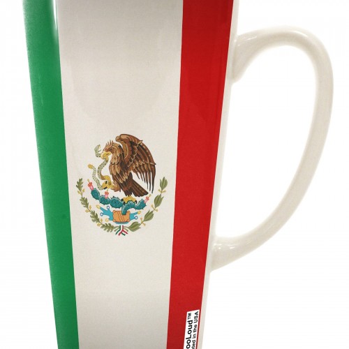 Mexican Pride: Exquisite 16 Ounce Conical Latte Coffee Mug Featuring Mexico Outline, Mexican Flag, and Mexico Text – Crafted by a Drinkware Expert White