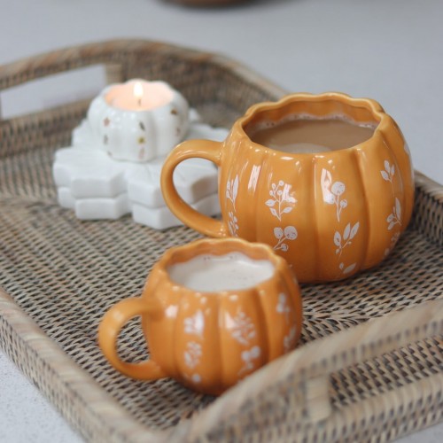 These pumpkin mugs are a capacity of 300ml making them not only a perfect size drinking mug but also functional styling accessories to use around your home or use as cute your autumn table decorations.