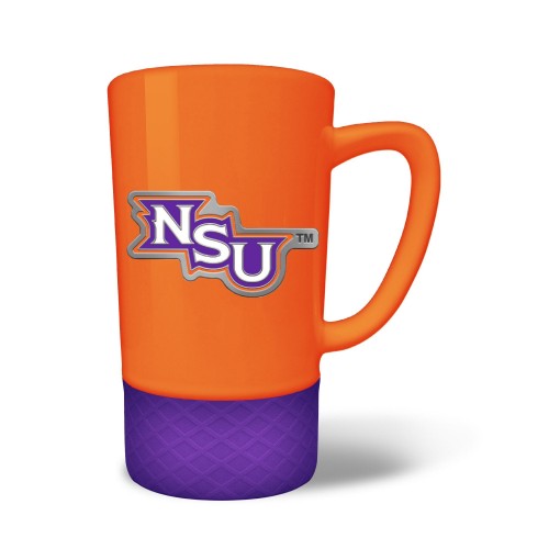 The 18 oz. JUMP team color ceramic coffee mug features a silicone base in coordinating team color and a hand crafted metal emblem.
