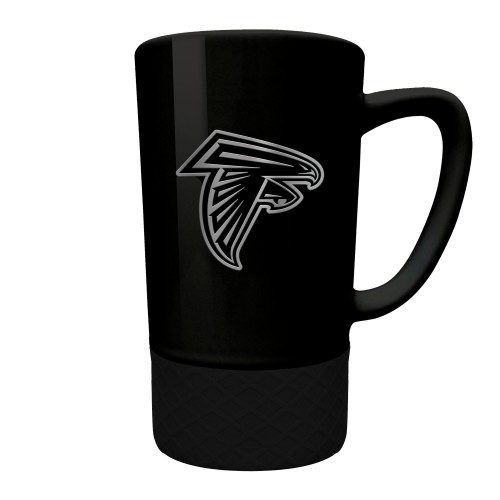 The 18 oz. STEALTH JUMP ceramic coffee mug features a black silicone base and a hand crafted metal team emblem.
