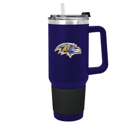 The 40 oz. COLOSSUS travel mug is made of high quality vacuum insulated stainless steel and comes in team colors with a coordinating color silicone grip. It features a high quality hand crafted officially licensed metal team logo. Includes a push down lid and clear drinking straw.