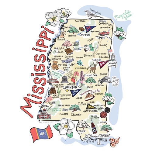 We’ve got it handled! ☕ Bring the comfort of home with you everywhere. These one-of-a-kind designs by Fish-Kiss display what makes Mississippi special. Look closely – you might even find your small town!