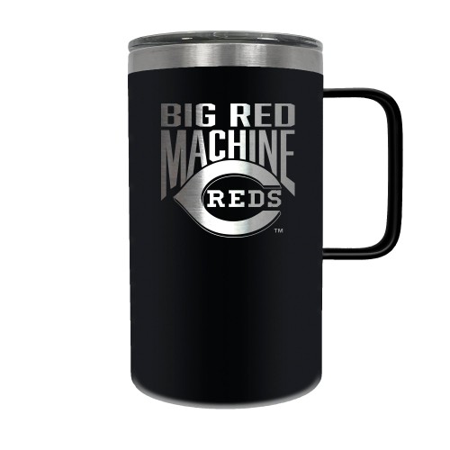 The Hustle is a 18oz vacuum insulated travel mug with large handle. Includes spill resistant lid and features laser etched team graphics.