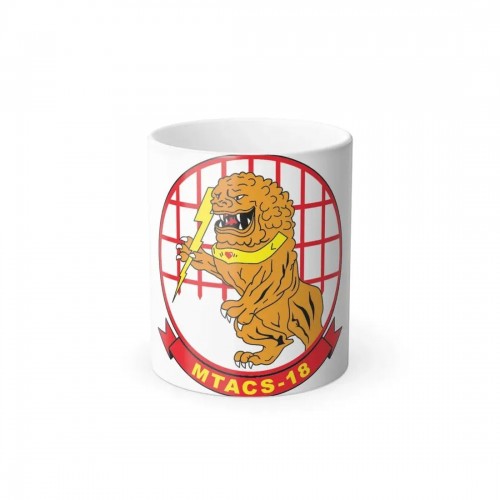 The design of this color-changing coffee mug centers on the proud identity of MSB Company E, a vital component of a Marine Expeditionary Force Support Battalion within the United States Marine Corps.