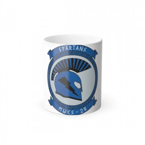 The design utilizes color-changing technology. The base design, visible when the mug is cold, likely displays the squadron’s official colors or a subdued representation of their insignia and unit designations. As hot liquid is poured into the mug, the design transforms, revealing hidden elements. This could include a representation of the 3rd Marine Aircraft Wing emblem or imagery depicting various military operations supported by the squadron, such as Desert Storm or Enduring Freedom. Perhaps a silhouette of a military aircraft or a map of operational areas.