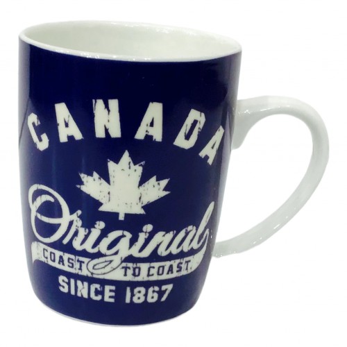 Mug Canada Original Coast to Coast Since 1867 Coffee Cup 13oz. White and Denim Blue