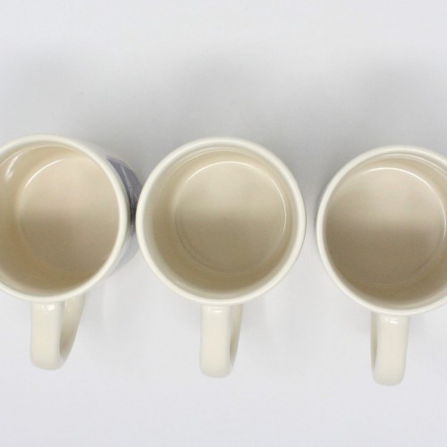 Bryan China Company was founded in New Castle, PA in 1980. Originally they were a contract decorator to the limited-edition collector plate market. They expanded over the years with more production and larger markets. They have a wide range of hand decorated items in porcelain, glass and ceramics like: Air force II dinnerware, products for Avon, headlamps for GM, and lots of Disney collectibles, mostly white labeled so you’re not aware it’s their product. However, they also have their own branded line, like these mugs.