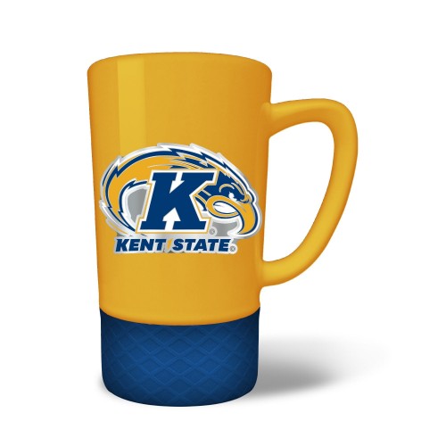 The 18 oz. JUMP team color ceramic coffee mug features a silicone base in coordinating team color and a hand crafted metal emblem.