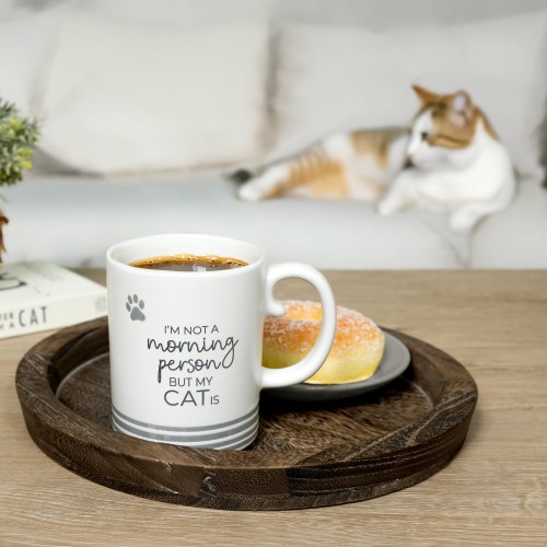 - IN-HOUSE DESIGN: Printed with the relatable sentiment “I’m not a morning person but my cat is” in mixed script and block lettering, accented by a subtle paw print. Minimalist white styling blends beautifully into modern, cozy, or farmhouse kitchens while showcasing your cat-parent pride.