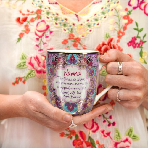 - IN-HOUSE DESIGN: Designed by Adele Basheer, “Nana; The Times We Share Are Precious Moments Wrapped Around The Heart With Love” text and accompanying design decals are applied to the entire mug.