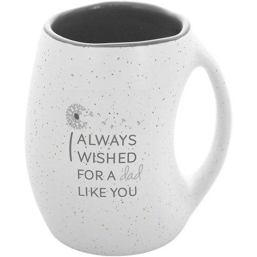 - PREMIUM QUALITY: This 16 oz hand-warming stoneware mug has an organic-shaped lip, a neutral white exterior, a gray dotted pattern & a gray interior. Large comfortable handle to fit almost anyone’s hands – sentiment facing towards you when held in your right hand and outward when held in the left hand. The back has a simplistic embossed heart near the handle at the base.