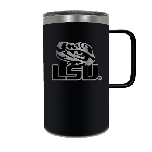 The Hustle is a 18oz vacuum insulated travel mug with large handle. Includes spill resistant lid and features a 3-dimensional handcrafted emblem.