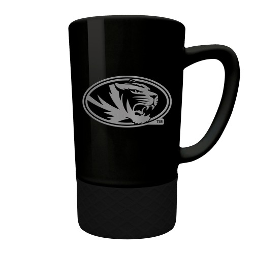 The 18 oz. STEALTH JUMP ceramic coffee mug features a black silicone base and a hand crafted metal team emblem.