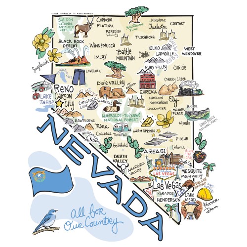 Mega sips, mega chill! 🧊 Bring the comfort of home with you everywhere. These one-of-a-kind designs by Fish-Kiss display what makes Nevada special. Look closely – you might even find your small town!