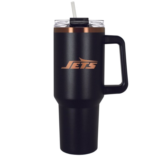 This 40 oz. COLOSSUS travel mug is made of high quality vacuum insulated stainless steel. It features premium copper undertones with durable powder coated black outer finish and laser etched team graphics.