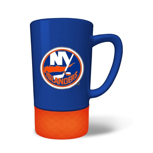 The 18 oz. JUMP team color ceramic coffee mug features a silicone base in coordinating team color and a hand crafted metal emblem.