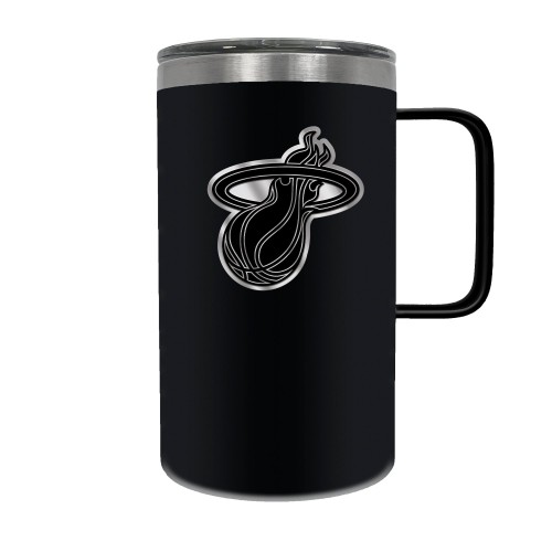 The Hustle is a 18oz vacuum insulated travel mug with large handle. Includes spill resistant lid and features a 3-dimensional handcrafted emblem.