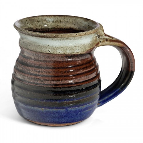 This sturdy, rounded walled, handmade stoneware Mug by Clear Creek Pottery holds 12 oz. and is decorated in the Old Republic glaze with deep reliable blue and black against a white background. It is 4.5″ high by 3.5″ wide, beautifully crafted and a solid mug with a thumb rest. Functional pottery is microwave, oven and dishwasher safe. All glazes are lead free and safe for food. Holds approximately 12 fl oz. Weighs approximately 1 lb 1 oz.