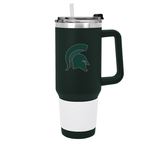 The 40 oz. COLOSSUS travel mug is made of high quality vacuum insulated stainless steel and comes in team colors with a coordinating color silicone grip. It features a high quality hand crafted officially licensed metal team logo. Includes a push down lid and clear drinking straw.