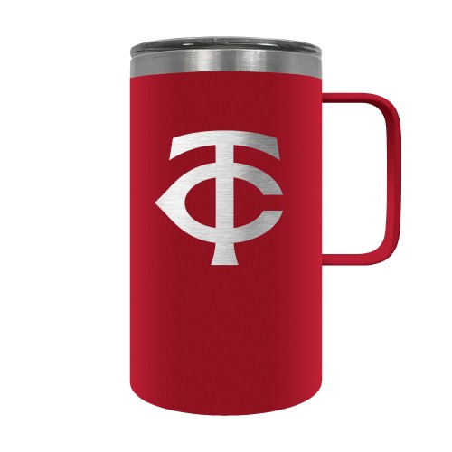 The Hustle is a 18oz vacuum insulated travel mug with large handle. Includes spill resistant lid and features laser etched team graphics.