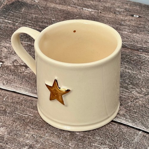 These sweet mugs have a pink heart design on one side and pink spots on the inside.