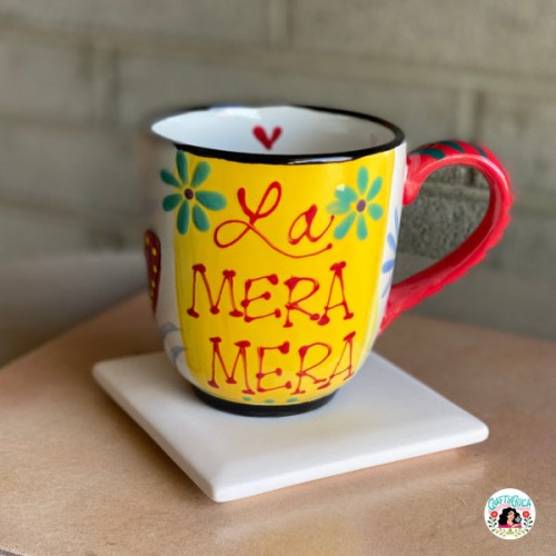 THe perfect vessel to enjoy your cafecito while nibbling on your favorite pan dulce (mine is the oreja). This is a jumbo mug – it holds 18 ounces of liquid joy!