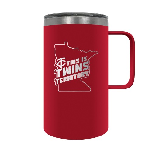 The Hustle is a 18oz vacuum insulated travel mug with large handle. Includes spill resistant lid and features laser etched team graphics.