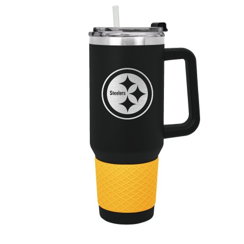 The 40 oz. COLOSSUS travel mug is made of high quality vacuum insulated stainless steel and comes in team colors with a coordinating color silicone grip. It features a high quality laser etched officially licensed team logo. Includes a push down lid and clear drinking straw.