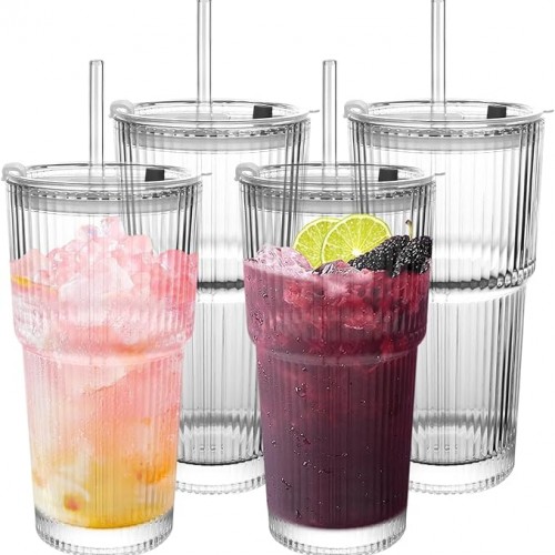- 【High-quality material】: The glass is made of high-quality glass, equipped with a glass straw and lid, heat-resistant and durable, lead-free, BPA-free. Water cups have the ability to resist cracking and cracking. It is dishwasher safe, and the thickened handling and smooth edges of the bottom ensure stability and prevent tipping on any surface