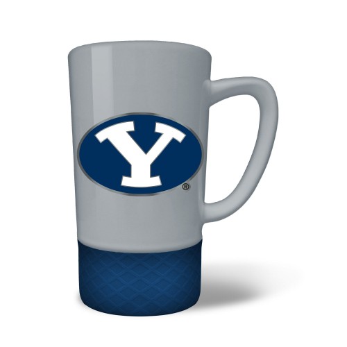 The 18 oz. JUMP team color ceramic coffee mug features a silicone base in coordinating team color and a hand crafted metal emblem.