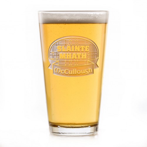 Slainte Mhath, a toast to your health! Whether you look good in a Scottish kilt or simply love our tartan plaid background design, this Scottish Heritage engraved beer glass will bring a smile to your face. If your ancestors came from Scotland or you need a wedding gift for a couple of Scots, this custom barware is exquisite. Our Scottish pint pub beer glasses are not etched or engraved, but are sand-carved by our master carvers. Each Scottish beer glass meticulously hand-crafted by carving out the background panel, leaving the lettering raised from the glass surface in a beautiful 3 dimensional manner.
