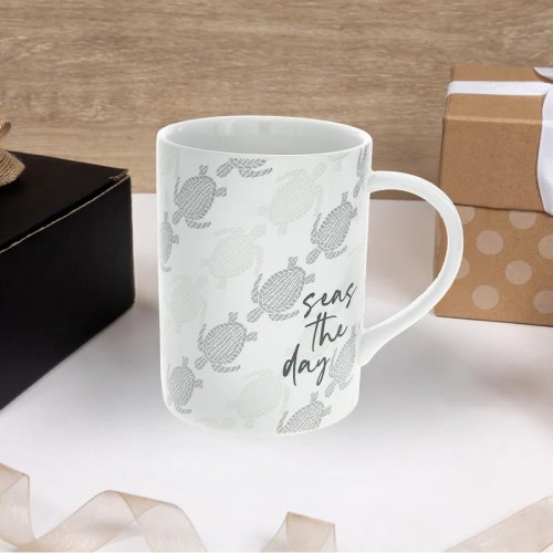Wake up and smell the inspiration with this charming 18 oz stoneware mug! Featuring a serene sea turtle design in soft gray tones and the uplifting “Seas The Day” message, it’s your daily reminder to embrace life’s adventures. The matte exterior pairs perfectly with a glossy interior, while the ergonomic handle makes it a joy to hold. Dishwasher safe and beautifully packaged, this coastal-inspired mug is ideal for morning coffee rituals or as a thoughtful gift for anyone who loves the ocean.