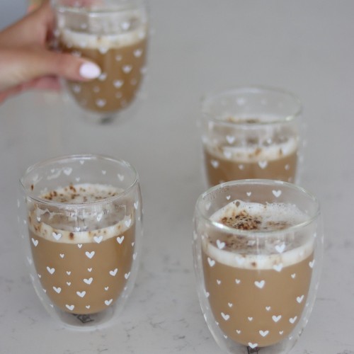 Set Of 2 Short Glass Mugs – Black Handled/Happy Tea