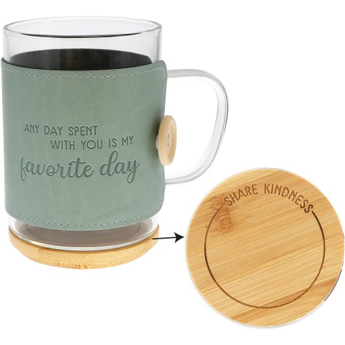- PREMIUM QUALITY: Enjoy your morning coffee in style with this 16 oz borosilicate glass coffee mug featuring a removable PU leather wrap secured with elastic and plastic button closure. The mug also comes with a coaster cap made from bamboo, adding a touch of elegance and functionality to your daily coffee routine.