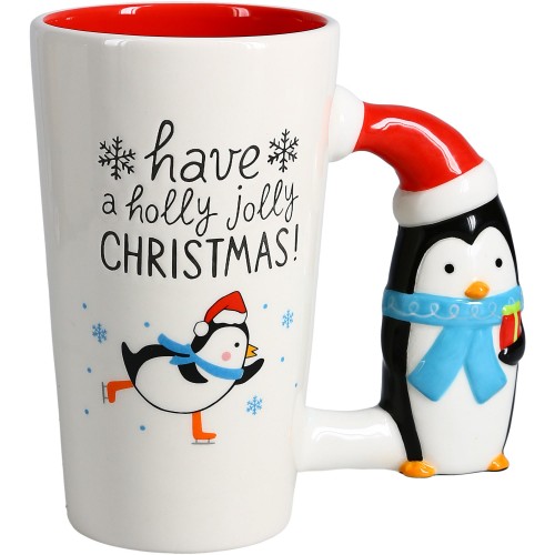 - IN-HOUSE DESIGN: Features a debossed text decal on the front of the mug. The Santa-shaped handle has a 3d look, feels all the way around, and is hand-painted. The interior is red. These mugs come packaged in a protective die-cut box.