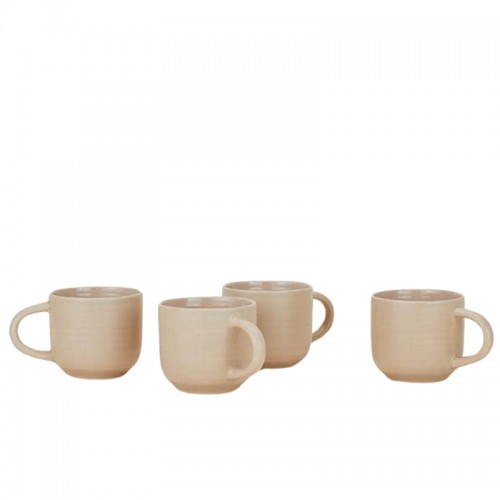 Wheel thrown, stoneware mug in a speckle glaze with haptic rounded handle.