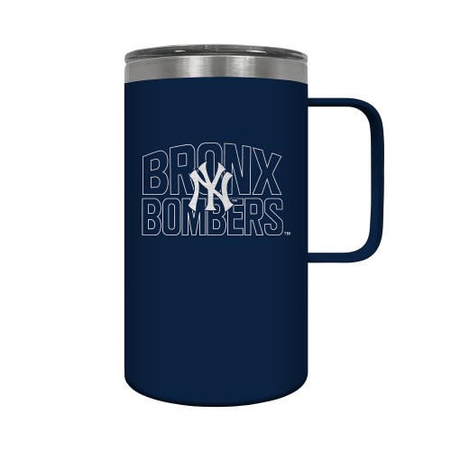 The Hustle is a 18oz vacuum insulated travel mug with large handle. Includes spill resistant lid and features laser etched team graphics.