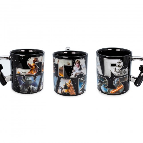 Wield your own epic tool in the form of this collectible coffee mug. The sculpted handle is modeled after a lightsaber hilt with an elegant silver finish. The familiar starry backdrop of the opening crawl wraps around the mug.