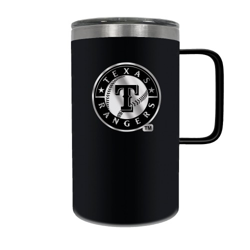 The Hustle is a 18oz vacuum insulated travel mug with large handle. Includes spill resistant lid and features a 3-dimensional handcrafted emblem.