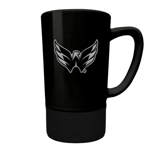 The 18 oz. STEALTH JUMP ceramic coffee mug features a black silicone base and a hand crafted metal team emblem.