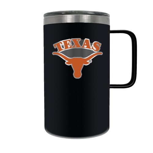 The Hustle is a 18oz vacuum insulated travel mug with large handle. Includes spill resistant lid and features a 3-dimensional handcrafted emblem.
