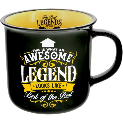 - IN-HOUSE DESIGN: “This Nurse Is A Genuine Legend, Very Caring, 100% Authentic, One Of A Kind, Totally Awesome” decal is in full caps, black and white, with multi-directional lines of words intertwined with yellow swirls and banners that stand out on the stark black exterior. The bright yellow interior has a black “Legends Of This World” logo on the interior only when the handle is facing to the right side only.
