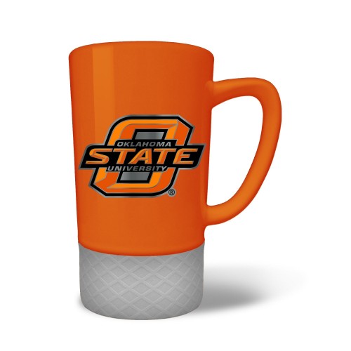 The 18 oz. JUMP team color ceramic coffee mug features a silicone base in coordinating team color and a hand crafted metal emblem.