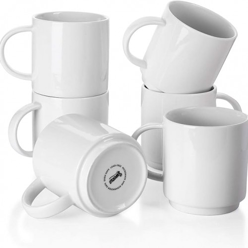 - Decent Weight, Long-lasting Porcelain – These large mugs with handle are great for office use and home use, as they work well in both cold and hot temperatures. The sturdy porcelain is oven, microwave, freezer and dishwasher safe.