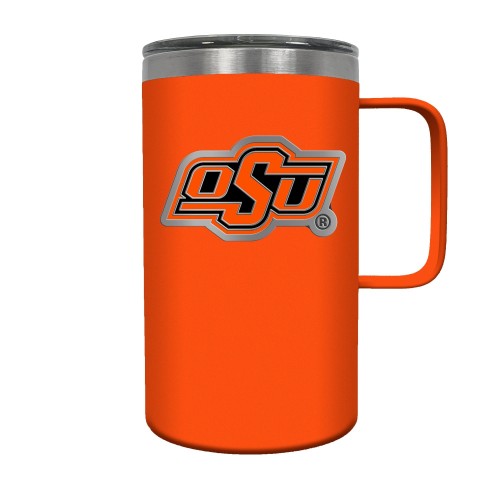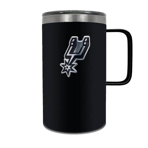The Hustle is a 18oz vacuum insulated travel mug with large handle. Includes spill resistant lid and features a 3-dimensional handcrafted emblem.