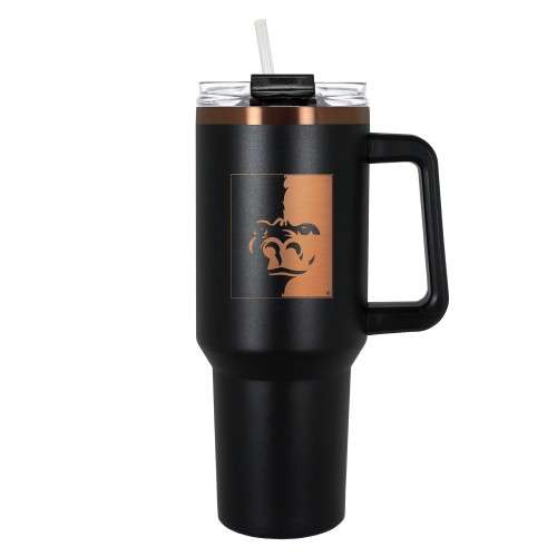 This 40 oz. COLOSSUS travel mug is made of high quality vacuum insulated stainless steel. It features premium copper undertones with durable powder coated black outer finish and laser etched team graphics.