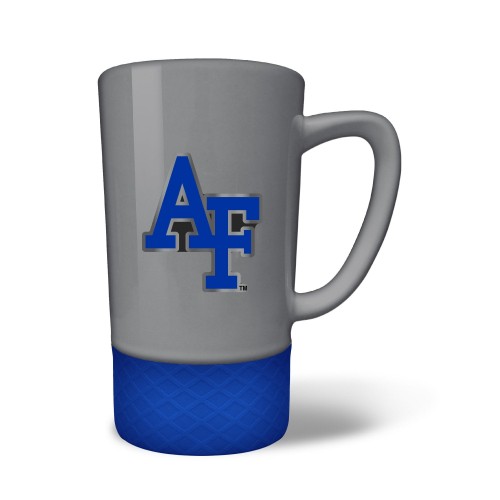 The 18 oz. JUMP team color ceramic coffee mug features a silicone base in coordinating team color and a hand crafted metal emblem.