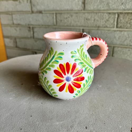 Okay, it is not TIN, but a ceramic likeness of a tin camping mug. I hand painted this with a cream base, rose accents, topped with red accents.