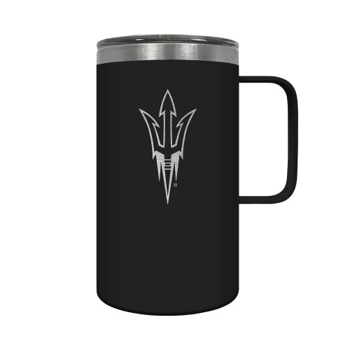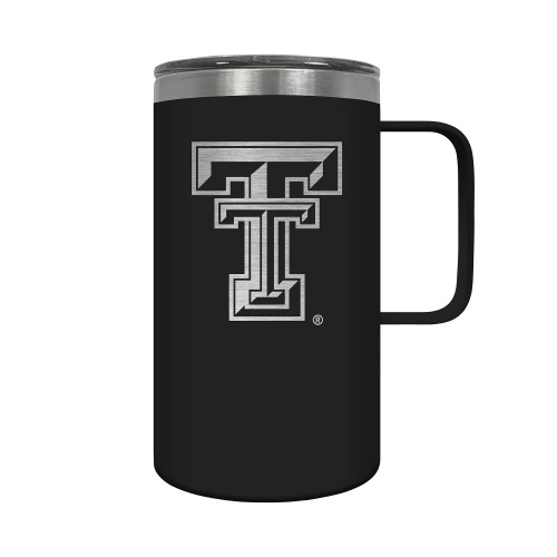 The Hustle is a 18oz vacuum insulated travel mug with large handle. Includes spill resistant lid and features laser etched team graphics.