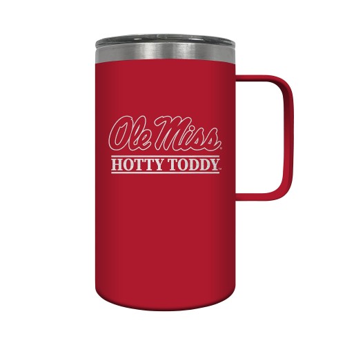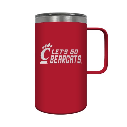 The Hustle is a 18oz vacuum insulated travel mug with large handle. Includes spill resistant lid and features laser etched team graphics.